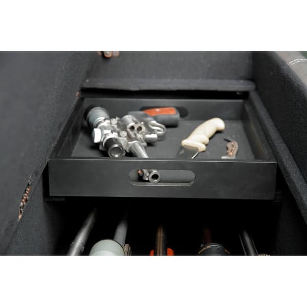 Ample storage in upper compartment for blankets or sportsmen accessories.