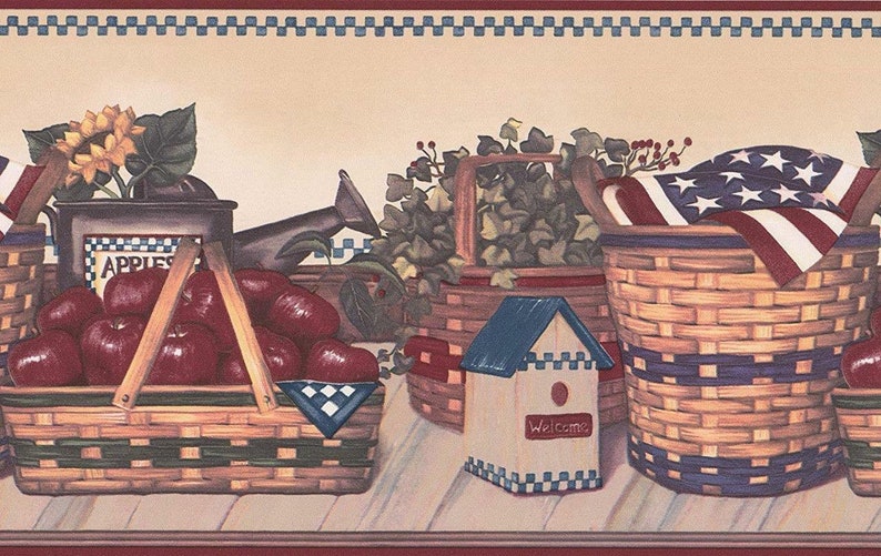 Cut my kitchen in half with the border ,did the resst in rustic yet patriotic lots of compliments.