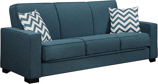 This sofa sleeper is very useful for a miniature living space or apartment. The handy living transitionally designed sofa sleeper has track arms and converts into a full size bed with the touch of a hand. This sofa sleeper is very useful for a miniature living space or apartment. The microfiber upholstery and thick throw pillows included.