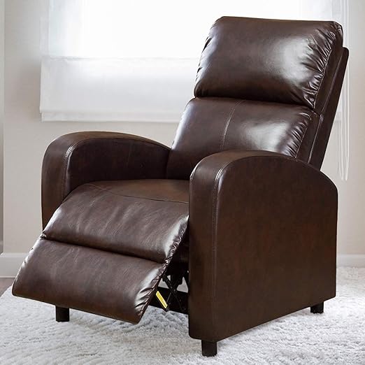 Compact space in my home. Assembly was exhausting and one of the two main bolts was stripped out of the wood! Finding the right size, style, and range of motion is among the most important aspect of every recliner. Brown leather recliner leather recliner chair grey leather glider recliner recliner chairs recliners chair and a half reclining buy fdw recliner chair single reclining sofa leather chair home theater seating living room lounge chaise with padded seat backrest (brown).