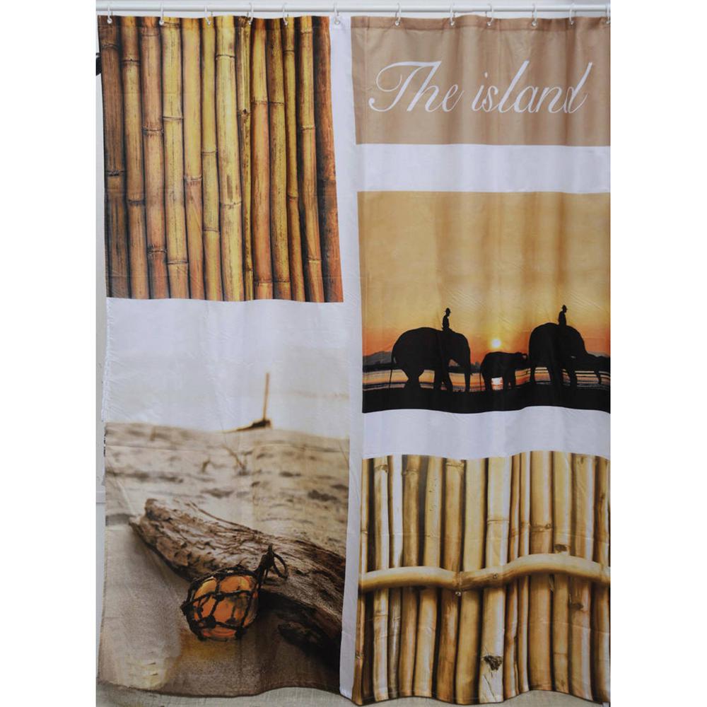 Fabric shower curtain with digital printing.