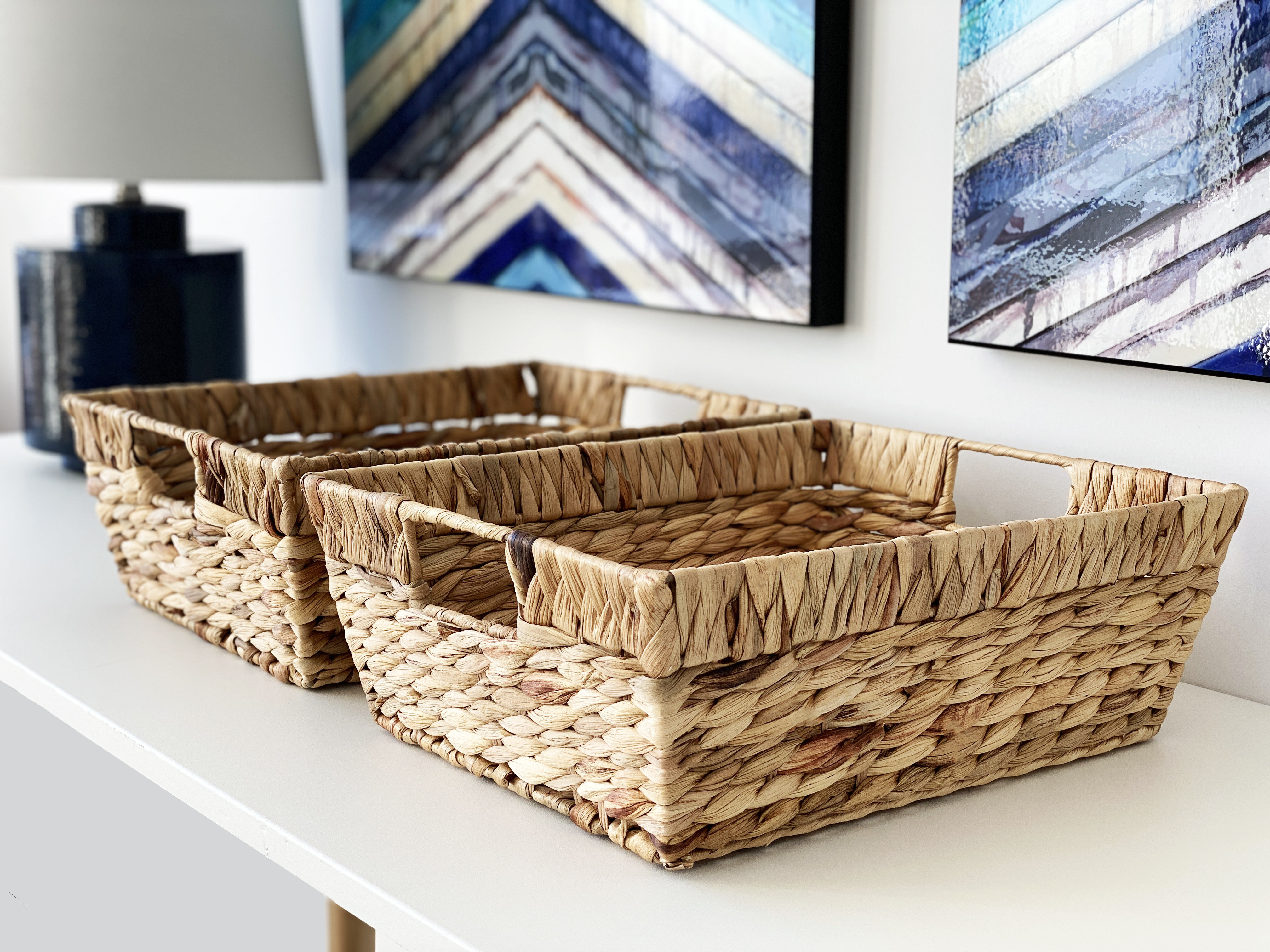 All baskets are hand woven, so. The lid conceals what's inside and allows for easy stacking with other baskets next to a media console. Color brown material jute/burlap department home organization location baskets upc 191607541031 location id org29. Vintiquewise qi003631.rc water hyacinth wicker rectangular tissue box cover, rectangle, brown.
