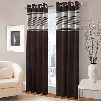 Buy La Elite Solid Fabric Set Of 2 Panel Pcs Polyester Eyelet Grommet Faux Silk Window Curtain Size Width X Length 48 Inch X 60 Inch Brown Color Online At from images-na.ssl-images-amazon.com