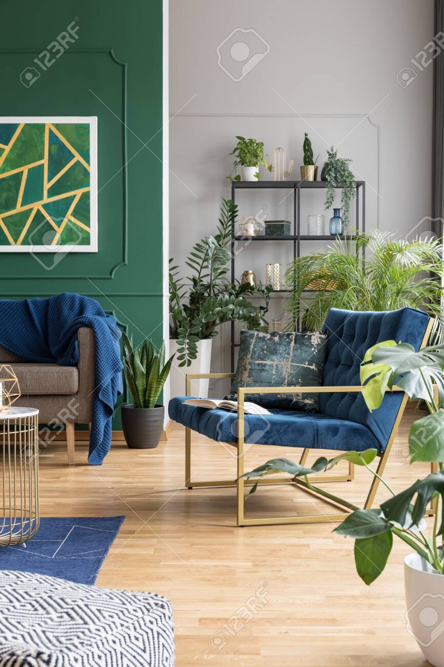 21+ Brown Couches With Blue Pillows. Pillows in bright or unexpected colors can punch up creative moods and jazz things up in general. Real photo of a couch with pillows standing next to a lamp and behind a patterned rug and a pouf with wooden basket in living room interior with painting and fireplace.