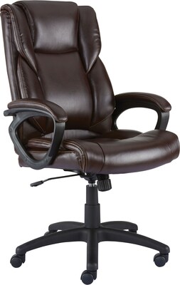 Surround yourself in plush comfort with this kelburne office chair. The range of executive office chairs, computer chairs and meetings room chairs on cult furniture will help you to find the perfect piece for your. Comfortable brown leather office chair, wooden arms and base, worn but working well. An office chair upholstered in brown faux leather with white contrast stitching.